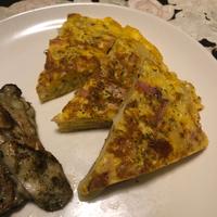 返すときに失敗して急遽オムレツ型に😅ベーコンとチーズの塩分が効いてて何もかけなくても美味しかったです。