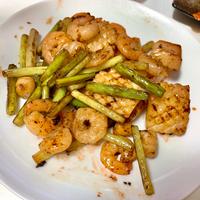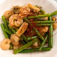 ニンニクの芽とシーフードミックスの山椒オイスターソース炒め レシピ・作り方