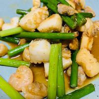 「ニンニクの芽とシーフードミックスの山椒オイスターソース炒め」の作り方を簡単で分かりやすいレシピ動画で紹介しています。
