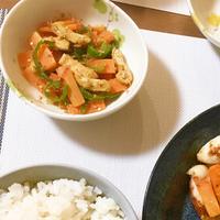 にんじんはレシピより薄切りにして、レンジで(600W 2分)チンしてから、炒めました。