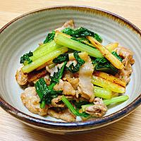 豚バラと炒めると、セロリの臭みが少なくなる!と主人は言います。