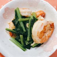 ホタテがなかったので冷凍むきエビ、小松菜を使いました。