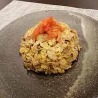 - 6 ごま油を回しかけ、1を加え強火でサッと炒め合わせたら火から下ろします。お皿に盛り付け、紅しょうがをのせて完成です。