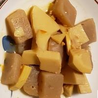 - 1 タケノコの水煮は一口大に切ります。