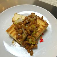 シンプルに、厚揚げ➕納豆➕ネギ➕めんつゆ➕八幡屋七味➕ごま油