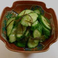 - 1 きゅうりを5mm程度の斜め切りにします。
