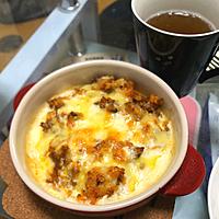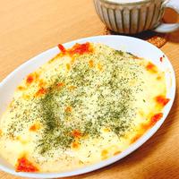 - 6 耐熱皿に4を入れ、5を全体にかけます。ピザ用チーズをのせ、オーブントースターで7分ほど焼きます。