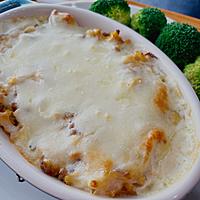 ごはんをカリフラワーで代用したドリア風のご紹介です。あっさりとした味のカリフラワーにクリームソースとチーズを合わせてコクを出しました。野菜をたくさん摂りたい時にもおすすめですよ。是非、おためしくださいね。