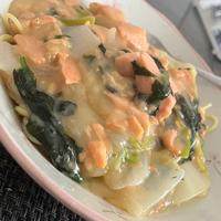鮭、ほうれん草、玉ねぎでフライパンで作ってみました!