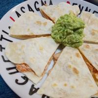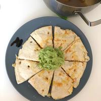 大きめのトルティーヤ生地が手に入ったら是非お試しいただきたいメキシカンレシピです。チーズを挟んでフライパンで焼くだけで気分はメキシコ!アボカドディップをたっぷりつけて、焼きたて熱々をビールと一緒に召し上がってくださいね。