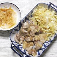 - 2 鶏もも肉は一口大に切ります。別のボウルに入れて、下味の材料を加えて手で揉み、ラップをかけて10分置きます。
