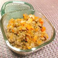 ご飯がすすむ味わい深いそぼろは、ごまの香ばしさと味噌の旨みが絶妙にマッチ。新玉ねぎやにんじん、ニラなどの野菜を加えてアレンジも楽しめます。作り方も簡単で、冷蔵保存3日、冷凍なら1ヶ月も持つ便利な作り置きおかず。おにぎりの具や、パンの具材としても大活躍。仕上げに一味をかけると、また違った美味しさを楽しめます。