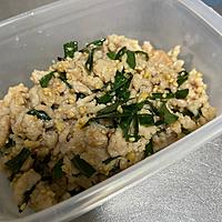 鶏ひき肉で代用、ニラも追加してみました。ごま油でこってりするかなと思ってましたが、鶏そぼろだからか丁度良かったです!