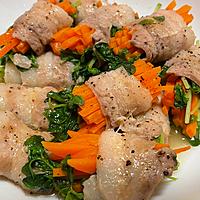 レンジで手軽に作れる時短レシピながら、豆苗と人参のシャキシャキ食感が楽しい一品です。豚バラ肉の旨みと野菜の彩りも鮮やか。チーズを加えるとまろやかに、お好みでおろしポン酢をかければさっぱりと楽しめます。フライパンで焼き目をつけるとこんがりジューシーな仕上がりに。お弁当のおかずやお酒のおつまみとしても最適で、家族みんなに好評な一品です。