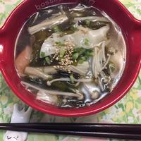 残っていたきのこ類と乾燥野菜を追加して作りました。優しいお味でとっても美味しく、ツルツルとした口当たりと喉越しで家族も美味しいと言ってくれました。体も温まるし、また作ろうと思います。