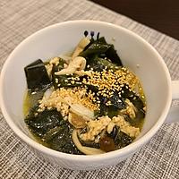 - 3 1、しめじ、乾燥わかめを入れ、全体に火が通るまで中火で3分程煮込みます。