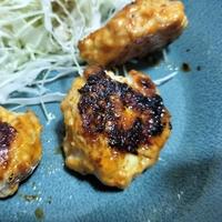 手が汚れるの嫌なのでスプーンとスプーンで丸めて油の中へポイ。揚げちゃいました。お豆腐混ぜて作るレシピもあったけどそっちの方がやわらかくて好みだったかな。でもソース簡単で美味しいしまた作りたいです。