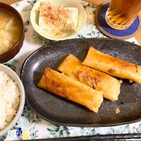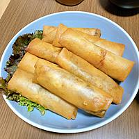 キャベツではなく、玉ねぎ、にんじん、ピーマン、たけのこで作りました。前に破裂して怖かったので笑、具材は先に作っておいて冷ましてから、キツキツにしっかり巻いたら破裂せずに作れました。平和に揚げられました。少ない油で揚げ焼きにしました。
