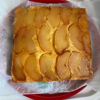 初めて作りました!キャラメリゼらしい焼き色と照りを出したかったので焦げ茶色になるまで15分くらい煮詰める時間を増やしました。下の生地を作っている途中でキャラメリゼがフライパンでカチカチに固まってしまいリンゴは小さくなってしまったので、ある程度煮詰まったらキャラメリゼは先に型に流してリンゴを敷き詰めておいた方がいいです。