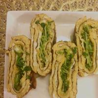 卵焼きアレンジレシピ!!豆苗のシャキシャキ感がよい!!(*゚▽゚*)