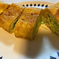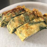 ボリューミーな卵焼きになりました。ちょこっとポン酢をかけて食べました。切るとき豆苗が長いのでビョーーーンと出て苦戦しましたがキッチンバサミでチョキチョキしたら収まりました。