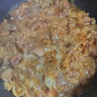 家族3人なので、鶏肉400グラムを使いました。調味料を2倍の分量にしたら、しょっぱくなってしまったので、玉ねぎ半分を薄切りしたものと水と料理酒を足しました。まだしょっぱかった気がしたので、とき卵を3個かけてみました。結果、普通の親子丼になってしまいました。これはコレで美味かったですが、調味料は2倍にして作らない方が良いかもしれません。