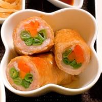 冷凍インゲンのカット済みのを使ったのと、にんじんを5cm位に切ってしまったので巻きにくかったのですが、キレイにできた。コチュジャンがなくて豆板醤と甜麺醤と砂糖入れて味付けしました。中まで味がしなかったので焼き肉のたれつけて食べたら美味しかった。