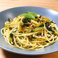 今回は1.6mmのスパゲティを使用しました。オリーブオイル、パセリ、くるみをミキサーにかけるとパセリのジェノバソースを簡単に作ることも可能です。その際、オリーブオイルや塩の量はお好みで調節してください。