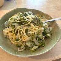食べかけですみません。子供舌の旦那ウケは悪かったですが、私は好きでした✨ペペロンチーノっぽくしたかったのでオリーブオイル多めで。クルミはなしで。