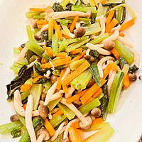 しめじを買い忘れるという大失態を犯したものの、小松菜とにんじんだけでも美味しかった。鶏ガラスープの素とごま油を多めに入れたら味が締まりました。