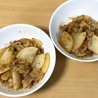 大根は4分レンチンしてから、油をひいたフライパンで先に炒め、一度取り出し、その後ごま油をひいて豚バラ炒めて、色が変わったら大根を戻した。