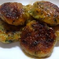 - 4 中火で熱したフライパンにサラダ油をひき、3をスプーンですくい入れ、直径5cm程の丸型に整えます。