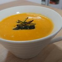 かぼちゃのポタージュのご紹介です。クリーミーで濃厚なかぼちゃ本来の甘みがとっても美味しい一品です。ほっこり優しい味が楽しめ、身体も心も温まります。洋食の付け合わせや、朝ごはんに、ぜひお試しくださいね。