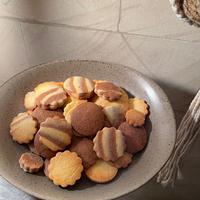 見た目にも可愛らしい、ボタンクッキーはいかがでしょうか。普段のクッキーにひと手間加えるだけで、ボタンのような形のクッキーに仕上がりますよ。今回はバタークッキーとココアクッキーで作りましたが、様々な味でお楽しみいただけますので、ぜひお試しくださいね。