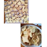 - 6 クッキングシートを敷いた天板にのせ、180℃のオーブンで15分程焼きます。ほんのり焼き色が付いたら完成です。