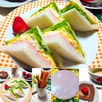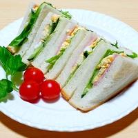 ハムと卵のオーソドックスな喫茶店にありそうなサンドイッチのご紹介です。マヨネーズと和えたゆで卵とハム、シャキシャキとした野菜の食感がとてもよく合うサンドイッチです。具材はお好みでアレンジをしても楽しいですね。