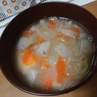豚汁作りました❗れんこんは、入れてないけど、里芋入れた❗汁がぬるっとした感じで美味しかったです🙆💕
