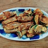 ズッキーニといっしょに豚肉のピカタも作ってみました。効率良くできて美味しく食べました。