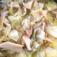 - 4 1、2を入れて蓋をし、キャベツがしんなりするまで中火で5分程煮込みます。