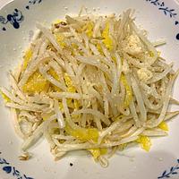 - 2 耐熱ボウルにもやし、白ワインを入れて混ぜ、ラップをして600Wの電子レンジで1分30秒しんなりするまで加熱します。
