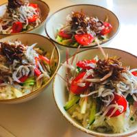しらすのおいしさ満載!みょうがとしらすが絶妙なおいしさの、火を使わず作れちゃうお手軽丼です。ふわふわ&カリカリ食感のシラスと、みょうがや夏野菜のフレッシュな味わいがやみつきです。食材の彩りもきれいで食欲をそそりますよ。