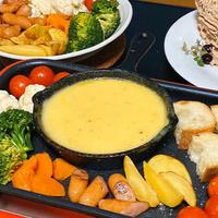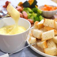 ピザ用チーズだけで手軽に本格的なフォンデュが楽しめます。白ワインの風味が効いた濃厚なチーズに、ブロッコリー、ジャガイモ、かぼちゃ、海老、バケットなどお好みの具材を絡めていただきます。さつまいもの甘みとチーズの相性が抜群で、ブルーチーズを加えると更に深いコクに。白ワインを牛乳に変えれば、お子様でも美味しく楽しめる人気メニューです。