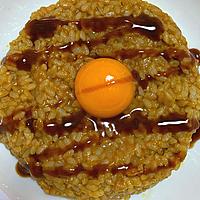 - 2 ご飯に1を混ぜ合わせて卵黄、中濃ソースをかけて完成です。