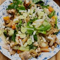 - 9 1を回し入れ、全体がなじむまで大きく混ぜ合わせます。火から下ろし、器に盛り付け、小ねぎを散らして出来上がりです。