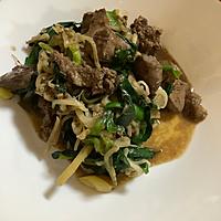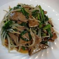 - 5 もやしに火が通ったらレバー、ニラ、(B)の調味料入れて炒め合わせたら完成です。
