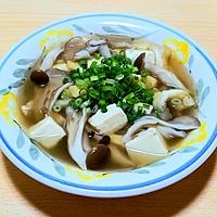 - 1 しめじは石づきを切り落として手でほぐし、しいたけは軸をとって薄切りにします。絹ごし豆腐は1.5cm角に切ります。