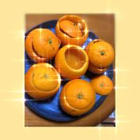 倍の量を作ったので オレンジジュースを足しました。果肉をくり抜く作業が大変でしたが 楽しく出来ました。出来上がりを見て更にテンションが上がりました~。😋🍴💕