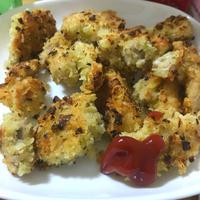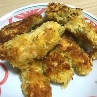まず、レシピをよく考えれば分かることでしたが、ジャガイモが衣として全くひっつきません。さらに「パン粉100g」という分量も意味不明です。ジャガイモや鶏むね肉のグラム数が記載されていないため個体差もあるかもしれませんが、100gものパン粉は絶対に不要だと思います。