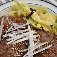 キャベツとキクラゲは中華ダシで炒め、ご飯に盛り付け、焼肉丼🍴