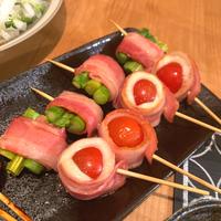 芽キャベツとトマトで彩りが綺麗な、居酒屋さんにある串メニューの再現レシピです。お酒のお供や、もう一品欲しい時におすすめの一品です。切って巻いて焼くだけの簡単・お手軽レシピなので、是非お試しくださいね。